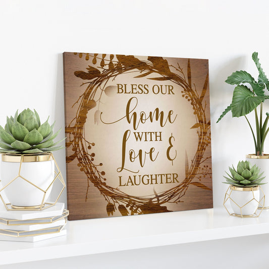 Bible Verse Canvas - Bless Our Home With Love And Laughter Canvas - Blessed Wall Art - Scripture Canvas Wall Art - Ciaocustom