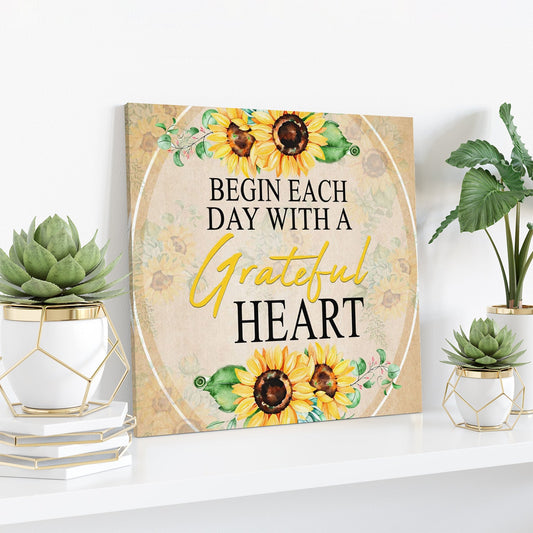 Bible Verse Canvas - Begin Each Day With A Grateful Heart Sunflower Canvas - Scripture Canvas Wall Art - Ciaocustom