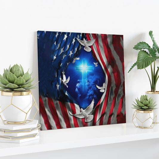 Bible Verse Canvas - Jesus Lion American Flag Of Faith Wall Art Canvas - Scripture Canvas Wall Art - Ciaocustom