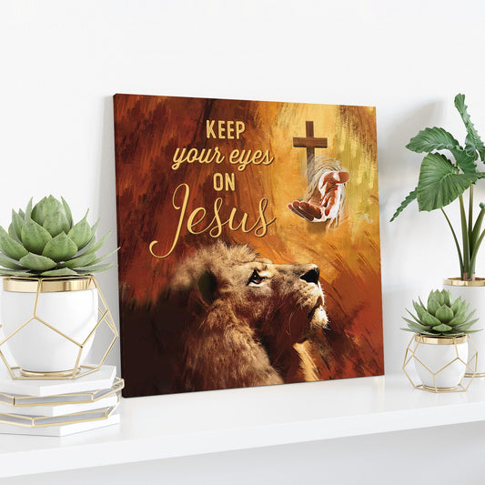 Bible Verse Canvas - Keep Your Eyes On Jesus Lion Of Judah Wall Art Canvas - Scripture Canvas Wall Art - Ciaocustom