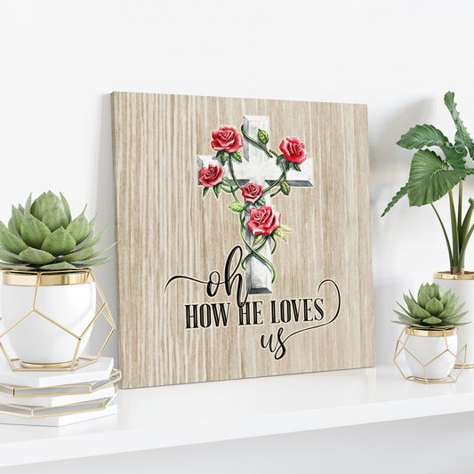 Bible Verse Canvas - Oh How He Loves Us Canvas Print - Scripture Canvas Wall Art - Ciaocustom