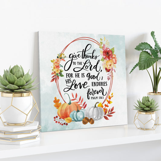 Bible Verse Canvas - Give Thanks To The Lord Psalm 1361 Thanksgiving Wall Art Canvas Print - Scripture Canvas Wall Art - Ciaocustom