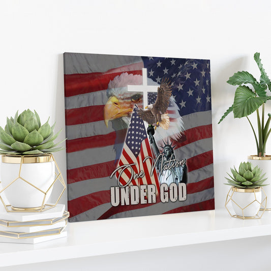 Bible Verse Canvas - One Nation Under God American Flag Canvas Wall Art - Scripture Canvas Wall Art - Ciaocustom