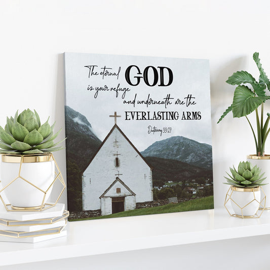 Bible Verse Canvas - Deuteronomy 3327 The Eternal God Is Your Refuge Canvas Print - Scripture Canvas Wall Art - Ciaocustom