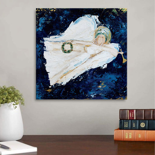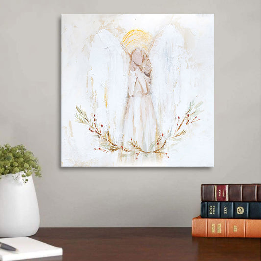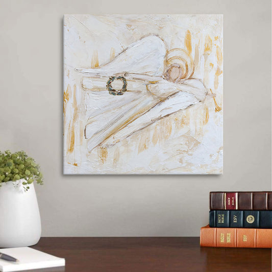 Angel with Wreath Paper Print - Christian Art Gift - Religious Canvas Painting