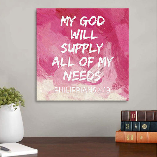 Bible Verse Wall Art My God Will Supply All Of Needs Philippians 419 Canvas Print