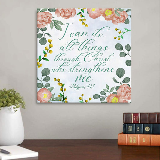 I Can Do All Things Through Christ Philippians 413 Floral Bible Verse Wall Art Canvas