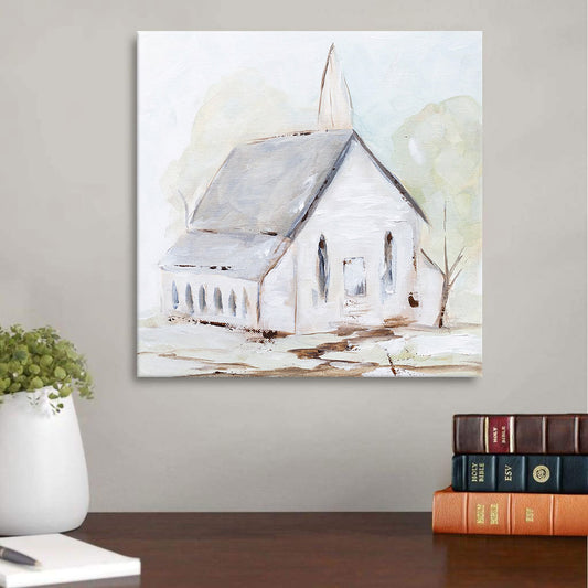 White Chapel Paper Print - Christian Art Gift - Religious Canvas Painting