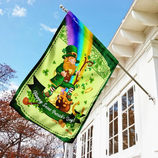 Happy Saint Patrick's Day Leprechaun House Flag 1 - St Patrick's Day Garden Flag - St. Patrick's Day Decorations