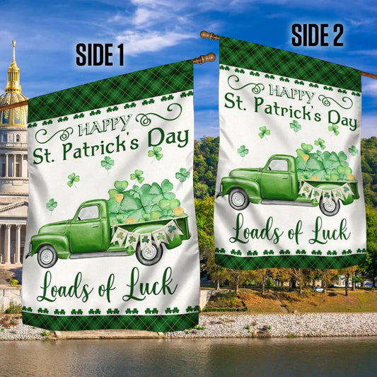 Happy St. Patrick's Day Green Truck Loads Of Luck House Flag - St Patrick's Day Garden Flag - St. Patrick's Day Decorations