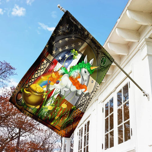 Happy St. Patrick's Day Irish American Unicorn House Flag - St Patrick's Day Garden Flag - St. Patrick's Day Decorations
