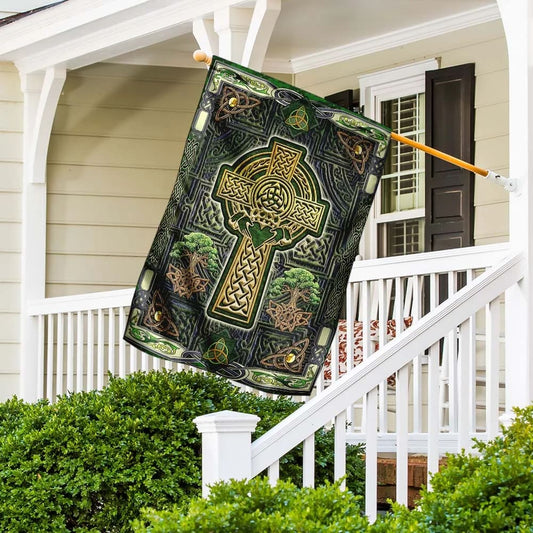 Christian Celtic Cross Saint Patrick's Day Irish House Flag - St Patrick's Day Garden Flag - St. Patrick's Day Decorations