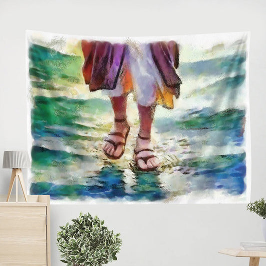 • Jesus Walks On Water Painting Tapestry - Jesus Picture - Religious Gift - Christian Tapestry