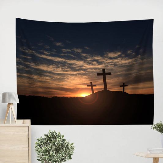 • Three Cross Sunrise Tapestry - Christian Wall Tapestries