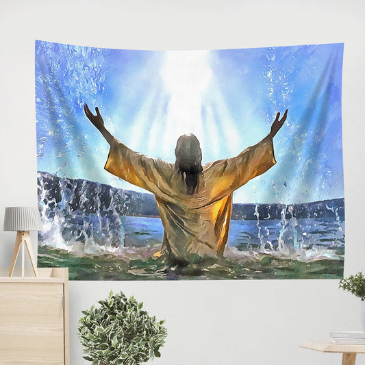 Jesus Christ Baptism Painting Tapestry - Jesus Portrait Picture - Religious Gift - Christian Tapestry