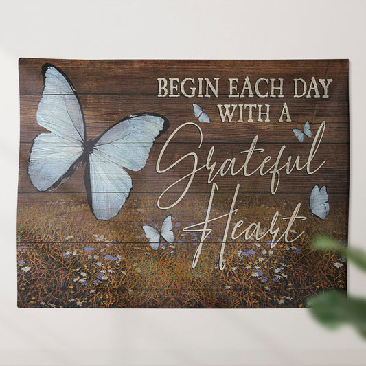 Begin Each Day With A Grateful Heart - Butterfly - Tapestry Wall Hanging - Christian Wall Art - Tapestries - Ciaocustom