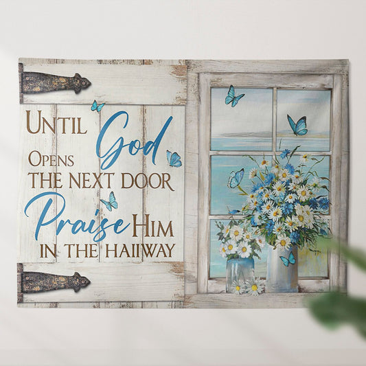 Until Opens God The Next Door Praise Him In The Haiiway - Butterfly - Tapestry Wall Hanging - Christian Wall Art - Tapestries - Ciaocustom