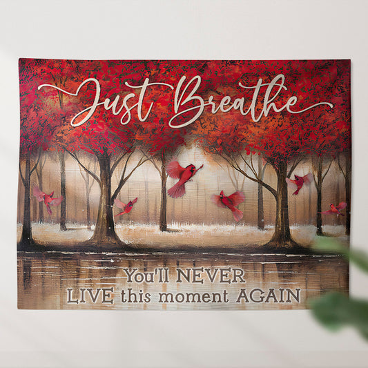 Just Breathe You'll Never Live This Moment Again - Cardinal Bird - Tapestry Wall Hanging - Christian Wall Art - Tapestries - Ciaocustom