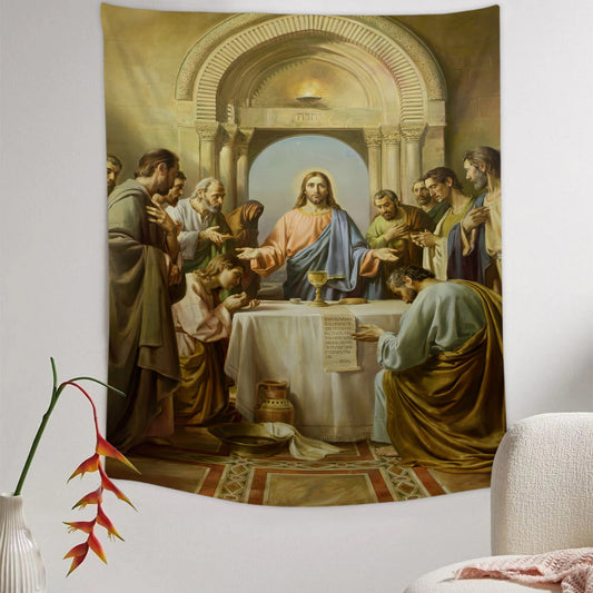 Christ Instituting - Christian Art Gift - God Tapestry - Jesus Wall Tapestry - Religious Tapestry Wall Hangings - Bible Verse Wall Tapestry - Religious Tapestry - Ciaocustom