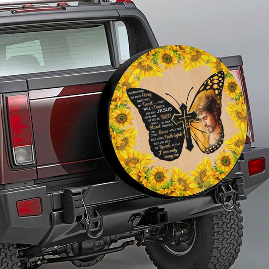 Jesus God Sunflower Tire Cover - Christ Cross Faith Tire Cover - Christian Tire Cover