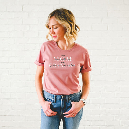 First Mom Now Grandma Personalized Tee Shirts For Women - Christian Shirts for Women - Religious Tee Shirts