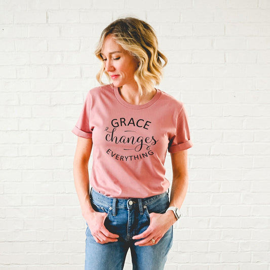 Grace Changes Everything Tee Shirts For Women - Christian Shirts for Women - Religious Tee Shirts