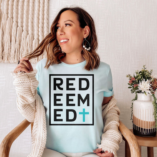 Redeemed Block Tee Shirts For Women - Christian Shirts for Women - Religious Tee Shirts