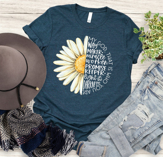 Waymaker Daisy T Shirts For Women - Women's Christian T Shirts - Women's Religious Shirts