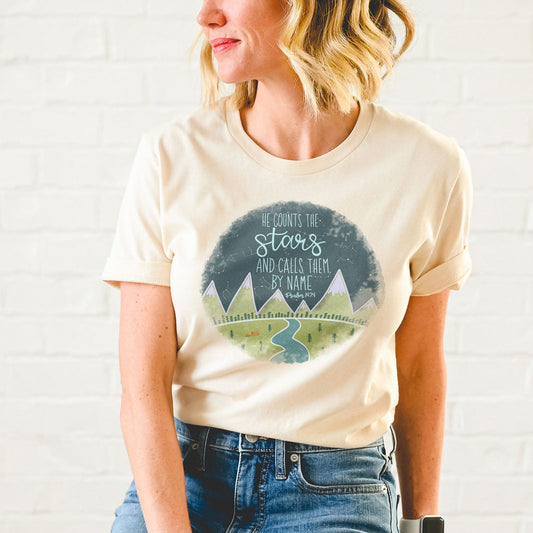 Psalm 147:4 Tee Shirts For Women - Christian Shirts for Women - Religious Tee Shirts