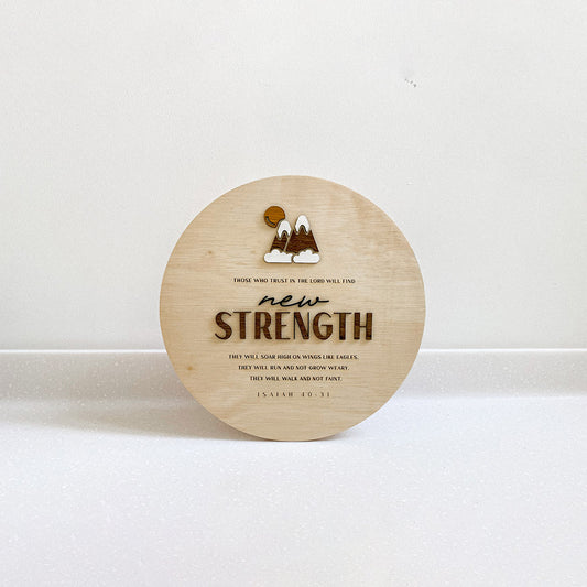 Those Who Trust In The Lord Will Find New Strength Round Wood Sign - Religious Wood Signs - Bible Verse Wall Art