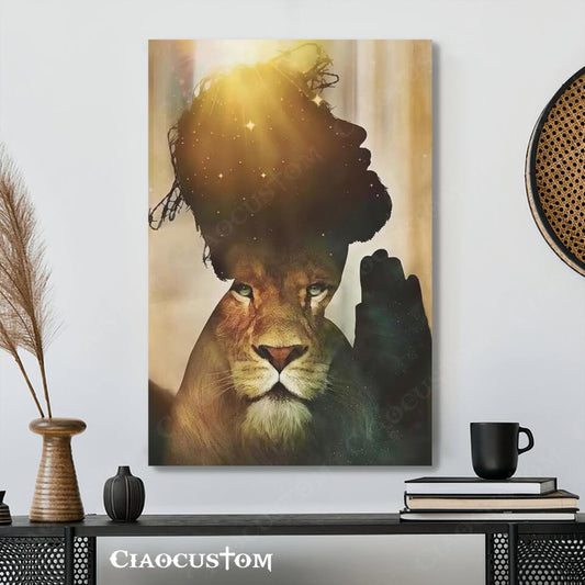 Jesus And Lion Picture - Christ And Lion - The Lion Of Judah Wall Art - Half Jesus Half Lion Canvas - Christian Wall Art - Ciaocustom