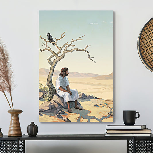 Jesus Sitting On Rocks Praying - Canvas Picture - Jesus Christ Canvas - Christian Wall Art