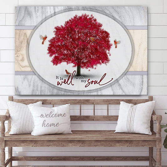 Cardinal Birds It Is Well With My Soul Wall Art Canvas - Christian Wall Decor