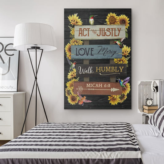 Act Justly Love Mercy Walk Humbly Micah 68 Canvas Wall Art - Christian Canvas Prints - Bible Verse Canvas