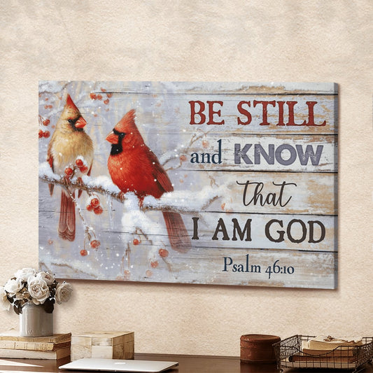 Cardinal Winter Painting Be Still And Know That I Am God Canvas Wall Art - Christian Poster - Religious Wall Decor