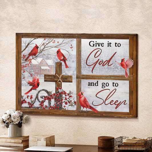 Cardinal Winter Village Give It To God And Go To Sleep Jesus Canvas Wall Art - Christian Poster - Religious Wall Decor
