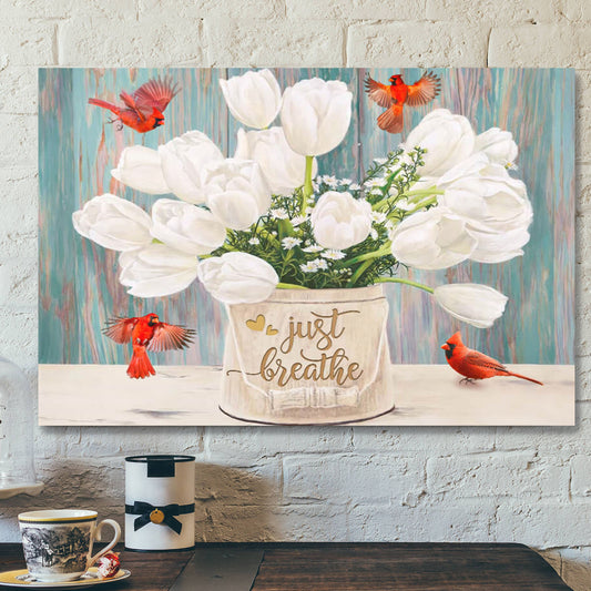 Cardinal – Just Breathe - Bible Verse Canvas - Scripture Canvas Wall Art - Ciaocustom