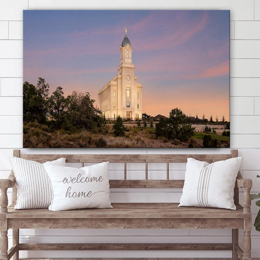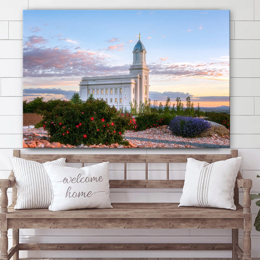 Cedar City Utah Temple Desert Glow Canvas Wall Art - Jesus Christ Picture - Canvas Christian Wall Art