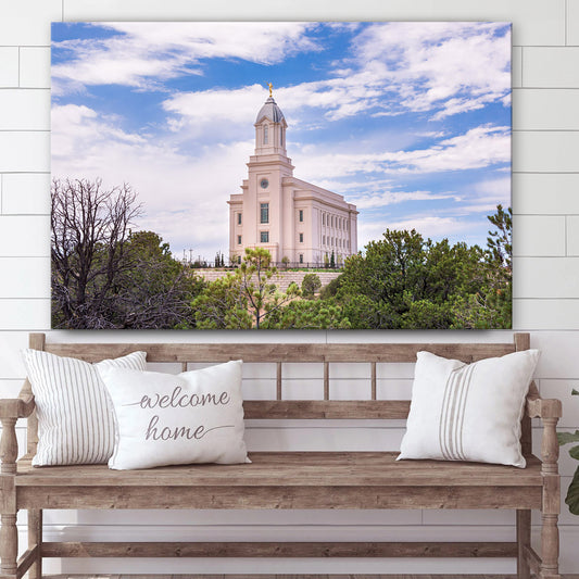 Cedar City Utah Temple Cloudy Blue Sky Landscape Canvas Wall Art - Jesus Christ Picture - Canvas Christian Wall Art