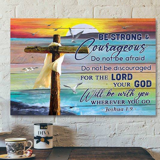 Christian Canvas Wall Art - Scripture Wall Decor - Jesus Canvas - Be Strong & Courageous - Ciaocustom
