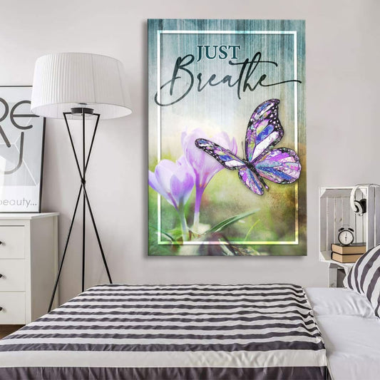 Christian Just Breathe Butterfly Canvas Prints - Bible Verse Wall Decor - Scripture Wall Art