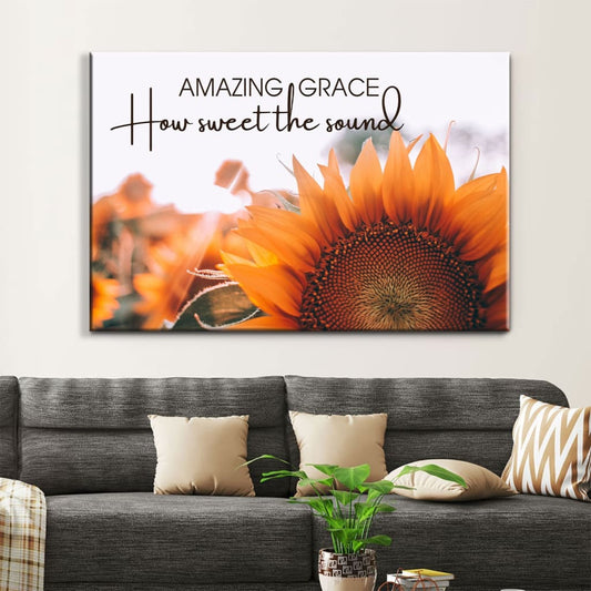 • Amazing Grace How Sweet The Sound Wall Art Canvas, Sunflower Christian Canvas Art - Religious Wall Decor