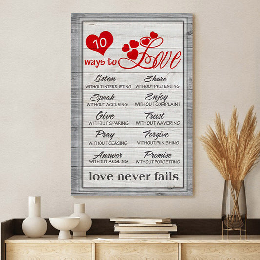 10 Ways To Love Bible Verse Wall Art Canvas Print - Religious Wall Art Canvas
