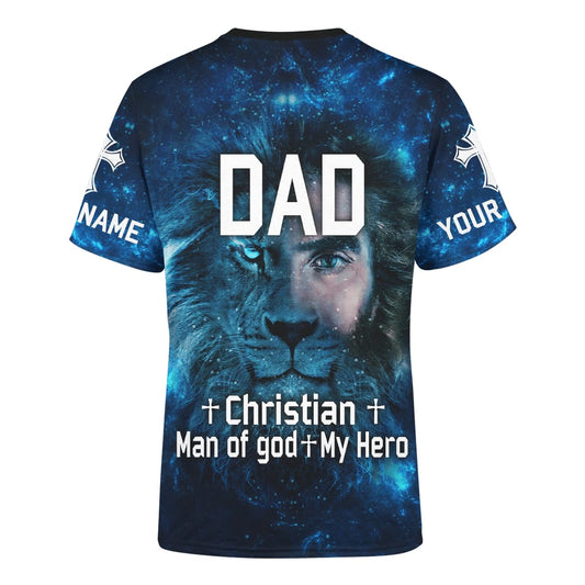 Dad Christian Man Of God My Hero Jesus Family Faith Blue Customized Shirt - Christian 3d Shirts For Men Women
