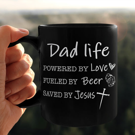 Dad Life, Powered By Love, Fueled By Beer, Saved By Jesus, Dad Mug