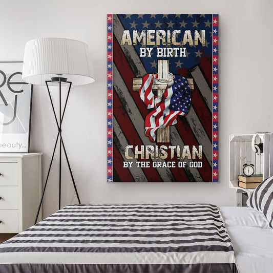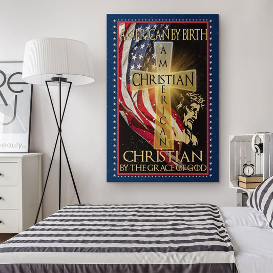American By Birth Christian By The Grace Of God Canvas Wall Art - Christian Canvas Prints - Bible Verse Canvas