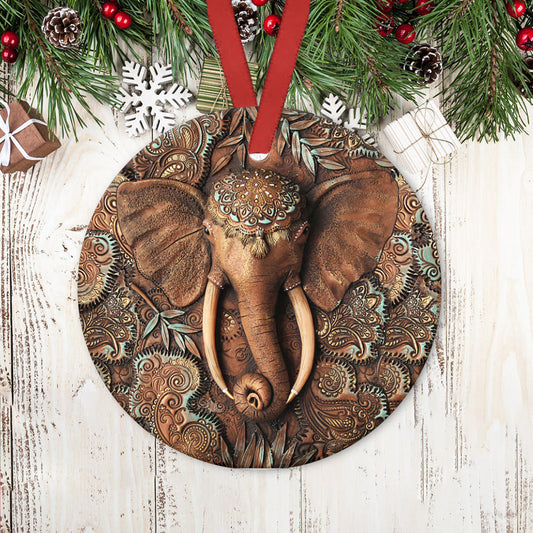 Elephant Wooden Style Metal Ornament - Christmas Ornament - Christmas Gift