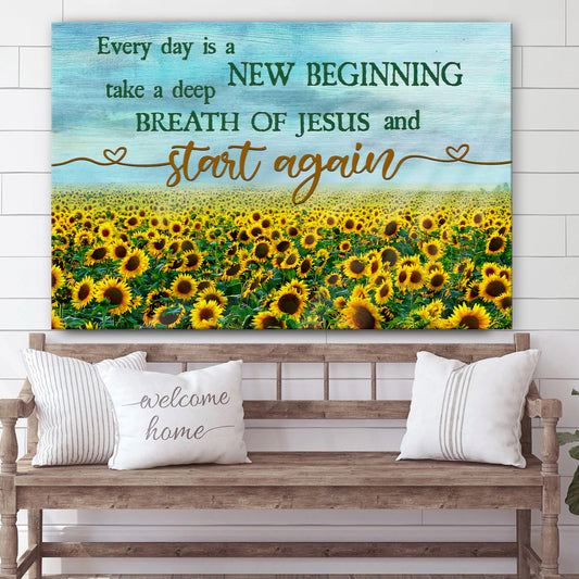 Every Day Is A New Beginning Breath Of Jesus Wall Art Canvas - Sunflower Christian Wall Decor