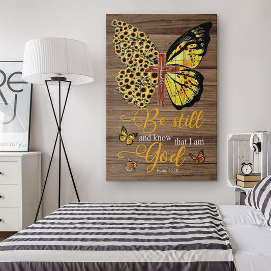 Faith Cross Sunflower Butterfly Be Still Psalm 4610 Canvas Wall Art - Christian Canvas Prints - Bible Verse Canvas