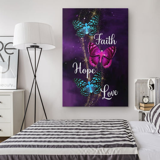 Faith Hope Love Butterfly Rose Christian Canvas Prints - Bible Verse Wall Decor - Scripture Wall Art